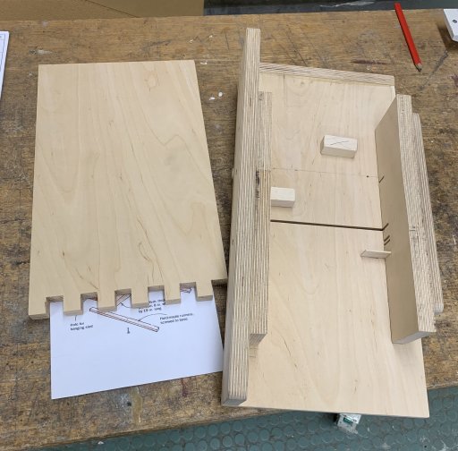Koska pelkällä vahvistimen nupilla ei voi soittaa pitää alkaa tekemään kaiutinkaappia. Ja kaiutinkaapin kulmat ajattelin tehdä tukevimmalla tavalla eli sormiliitoksilla. Sitä varten pitää ensin tehdä jigi jolla ne sormet ja lovet saa kohdilleen. Onneksi netistä löytää apua lähes kaikkeen mitä vaan sattuu tarvitsemaankin. Eli löytyi piirustukset jigille. Hiukan piti tietenkin soveltaa että toimii käyttämässäni sirkkelissä.