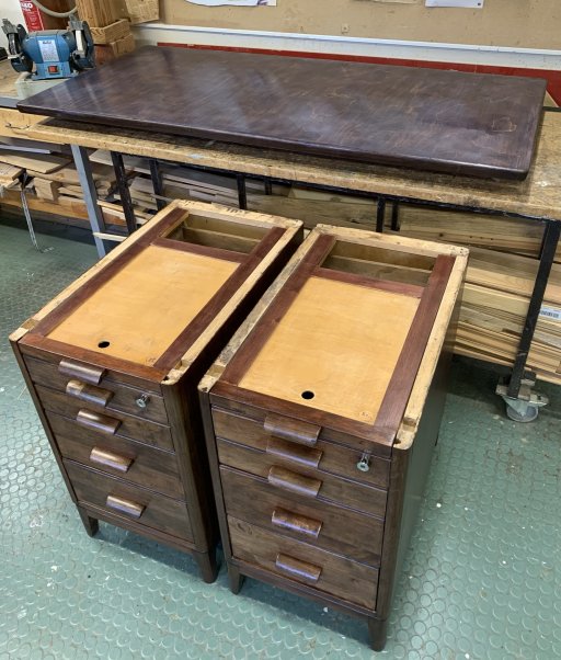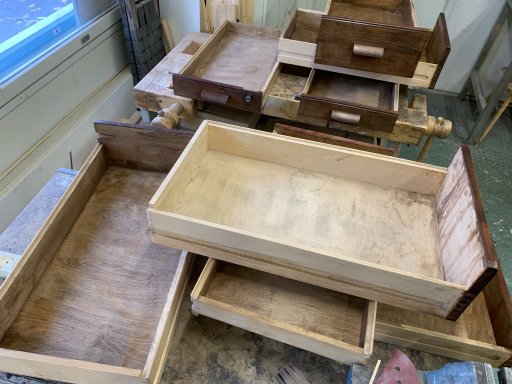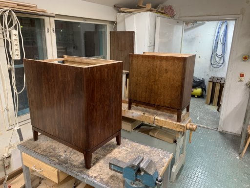 Laatikostojen pintoihin tehty kosmeettisia korjailuja ja hiottu hiukan pahimpia paikkoja.