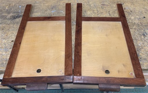 Aputasojen reunat hiottu ja petsattu. Näistä puuttui lasilevyt mutta ne sai teetettyä lasiliikkeessä.
