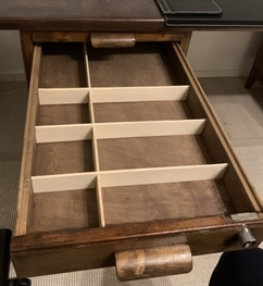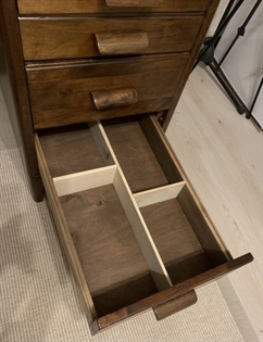 Tein laatikoihin erilaisia lokerikkoja. Laatikot on n. 61 cm pitkiä sisämitaltaan niin ei mene ihan heti kaikki tavarat sekaisin.
