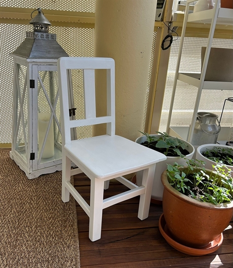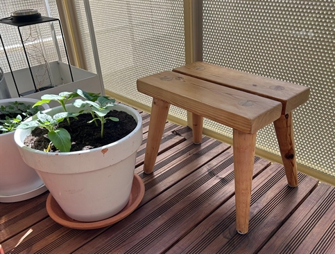 Parvekkeella oleva pieni tuoli ja jakkara kaipasivat pientä ehostusta.