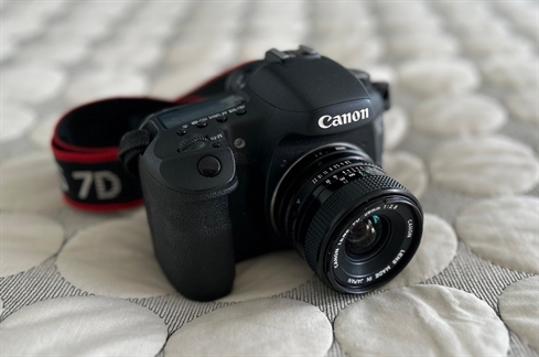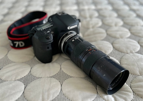 Hankin myös adapterin jolla saa nuo FD-sarjan linssit toimimaan EOS 7D:ssä. Tässä 28 mm. Se tarkoittaa myös paluuta käsisäätöiseen kuvaukseen koska tuon adapterin kautta ei saa mitään automatiikkaa mukaan. Tässä kohdassa apuun tulee kännykkä jolla saa mitattua valotukselle aukon ja ajan.