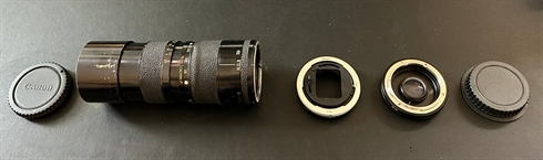 Teleobjektiivin kanssa onkin sitten jo hauskempaa kun on ensin Tamronin 85-210 mm:ssä kiinni FD-adapteri johon tulee kiinni URTH FD-EF-adapteri.