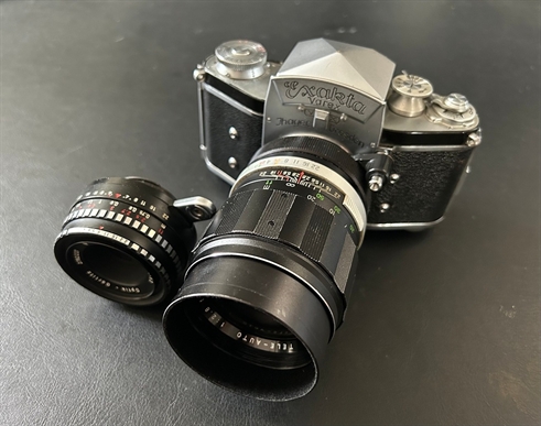 Ostin uuden kameran, vuodelta 1953. Ihagee Exakta Varex VX. Mukana f2,8/50 mm ja f2,8/135 mm objektiivit. Ihagee teki maailman ensimmäisen kinofilmiä käyttävän ns. peiliheijastus (eli Sinle-Lens Reflex) SLR-kameran jo vuonna 1936.
